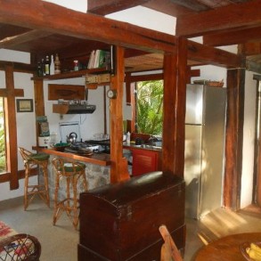 Uma suite térrea com ar condicionado, com vista para o rio Carapitanguy e dois quartos com ar condicionado no segundo andar com vista para a praia e um lavabo. O banheiro dos quartos de cima é externo à casa. A área total da propriedade tem 40.000m2 com frente praia e frente rio. Perto do Bar da Rô, com fantástico pôr do sol.