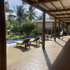 Luxuosa Villa em frente à exclusiva praia da Bombaça, em vizinhança super nobre. São 6 amplas e maravilhosas suites, todas em frente à praia, defronte a uma linda piscina de borda infinita. Cozinha e sala de jantar independentes da área íntima e da área do bar e lounge, permeados por um lindo jardim tropical que perfazem 3.500m2, com ambientes diferenciados compostos por um confortável gazebo e bancos rústicos, perante 50 metros de frente praia. Serviço de camareira e cozinheiro. Os passeios e as compras também podem ser organizados pela equipe.