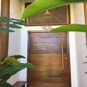 Excelente e novo imóvel na vila de Barra Grande, Península de Maraú, composto por uma maravilhosa casa principal térrea de 220m2 com 4 quartos sendo 2 suítes, uma enorme sala bem ventilada que une sala de jantar sala de tv e sala de estar, varanda e uma cozinha completa integrada a tudo isso, com o volume de um pé direito de 5 metros; lavanderia completa. Casa construída acima do nível do solo com estrutura em madeira e fechamento em alvenaria, todos os quartos com ar condicionado de última geração, todas esquadrias em madeira cumaru e vidro temperado, balcões da cozinha, banheiros e escada também em madeira cumaru.