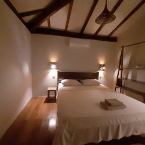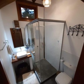 Com um Bangalô charmoso anexo, feito no mesmo padrão da casa, porém todo em piso de madeira cumaru, inclusive o banheiro. Com frigobar e ar condicionado de última geração e esquadrias em madeira.