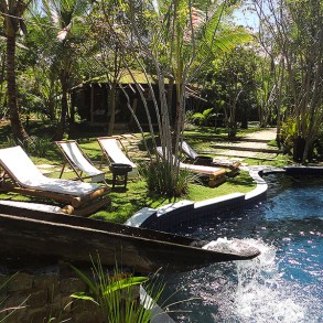 Uma obra-prima em harmonia com a natureza exuberante da Praia da Ponta da Baleia, no Cassange, Peninsula de Maraú. 5 bangalôs e 3 suítes novos, com decoração excelente bom gosto, uma linda piscina de 78m2, bar, restaurante com vista privilegiada da praia, lounge coberto, salão de jogos, jardim com várias árvores frutíferas, estrutura de apoio de praia (bar, guarda sol e espreguiçadeiras). Propriedade constituída de 11.000m2 entre a praia e a lagoa do Cassange.