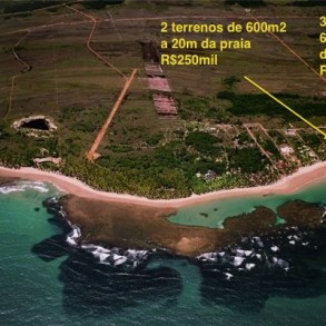 2.700 m2 (três lotes de 600m2 mais a área de marinha) com 30 metros de frente praia acrescidos de 1.200m2 (dois lotes de 600m2) a 20 metros da praia. Investimento, casa de praia, comercial...